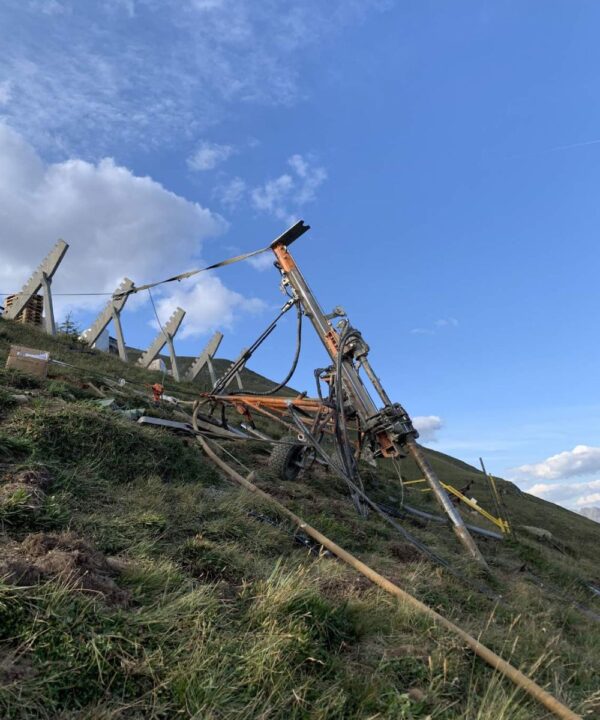 It’s tubular structure, with a wide base and three supports, allows the unit to adjust itself to the uneven ground while moving; the possibility to rotate the supports of 90° allows for an easy lateral translation. The MR-2 ID has a hydraulic rotating head for using DTH hammer, or with a rotopercussion hydro-pneumatic rock drill for hollow bar. A hydraulic cylinder moves the hydraulic feed for crowd and retraction.